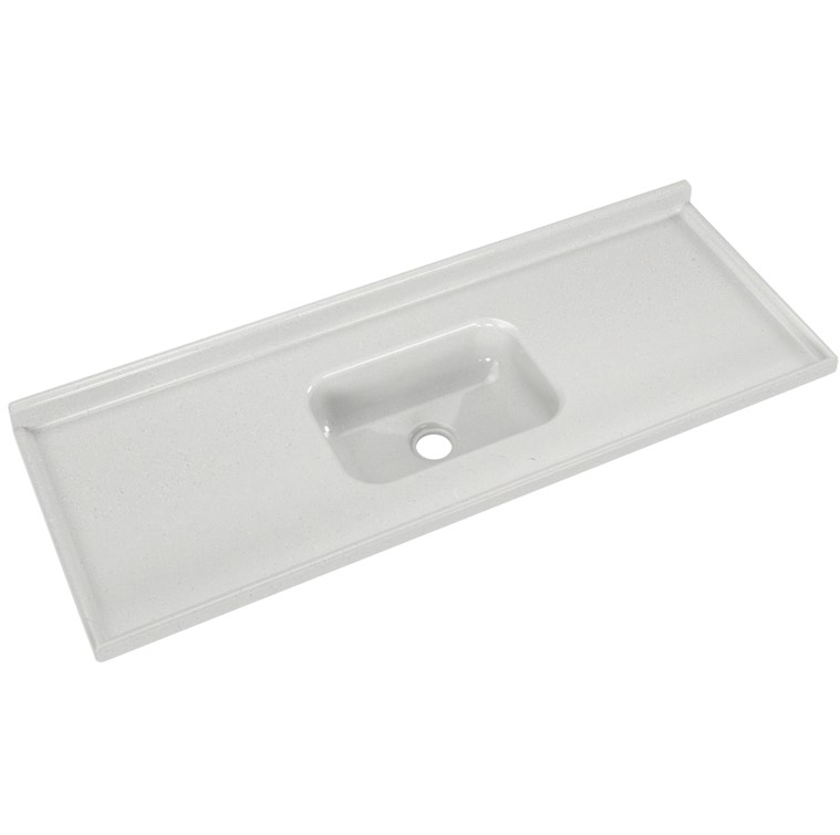Produto em mármore sintético com espessuras reforçadas, com cobertura granitada de gel coat com brilho e resistência incomparáveis.